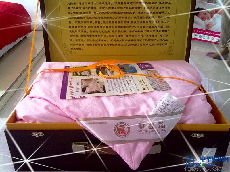 本品采用優(yōu)質(zhì)桑蠶雙宮繭為原料,經(jīng)傳統(tǒng)手工抽絲工藝及現(xiàn)代科學(xué)除味配方加工精制而成。屬于天然綠色產(chǎn)品和家居中的極品,富含18種氨基酸,具有抗菌、抗過敏及親膚的天性,長(zhǎng)期使用,可促進(jìn)人體新陳代謝,增強(qiáng)細(xì)胞活力,延緩衰老,并可預(yù)防肩周炎、關(guān)節(jié)炎、風(fēng)濕、感冒、過敏等疾病。由于蠶絲是能夠防霉的天然纖維,因此,它對(duì)防止病菌滋生,護(hù)理肌膚衛(wèi)生同樣具有非常明顯的功效。
