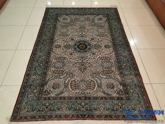 產(chǎn)品名稱:真絲地毯 編號:9218 尺寸:4×6英尺-1.22×1.83米  道數(shù):500道絲毯  圖案:波斯扇形高檔收藏絲毯,意大利寶石藍(lán)為基本色,細(xì)膩手工,100%天然桑蠶絲植物染色純手工編織而成。中國手工真絲地毯歷史源遠(yuǎn)流長。上海東方手工真絲地毯廠傳承中國手工絲毯工藝,用絲毯千變?nèi)f化的紋樣手工編織絲毯獨(dú)一無二的美麗,經(jīng)緯之間鐫刻永恒。就像這做工精湛,縝密的紋樣將歷史與現(xiàn)代連接。上海東方手織地毯廠主營純正100%真絲手工地毯,將世界地毯與中國絲毯相結(jié)合。形成以波斯地毯為主,傳統(tǒng)京式圖案,現(xiàn)代紋樣,美術(shù)圖案并存。廠家直銷,價廉物美。暢談手工絲毯工藝及文化的傳承。