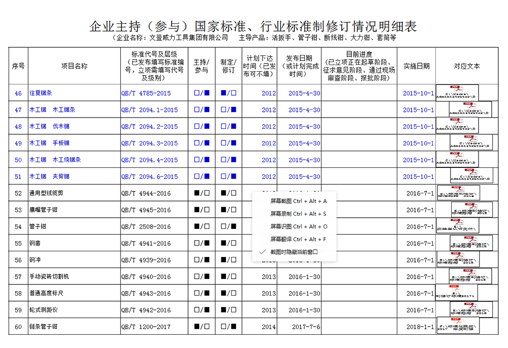 企業(yè)主持(參與)國家標(biāo)準(zhǔn)、行業(yè)標(biāo)準(zhǔn)制修訂情況明細(xì)表